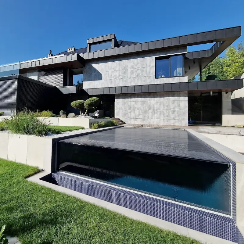 Jednym z kluczowych elementów domu jest przestronny taras z basenem typu infinity.